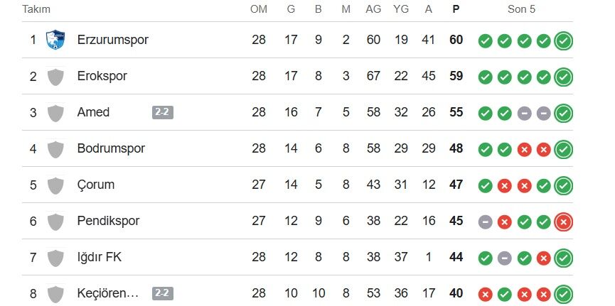 Amedspor bu sonuçla puanını 55 yaparak ligin 3. Sırasında yer aldı.