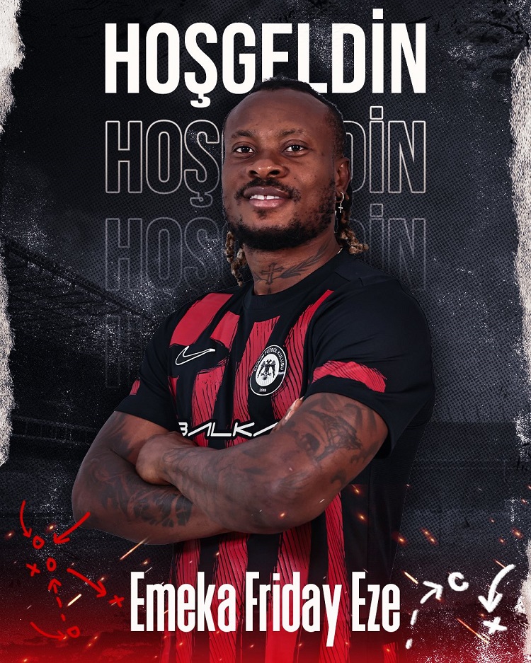 “Hoş Geldin, Emeka Friday Eze! Profesyonel futbolcu Emeka Friday Eze ile 2 yıllık sözleşme imzaladık. Eze’ye aramıza hoş geldin diyor, başarılar diliyoruz!”