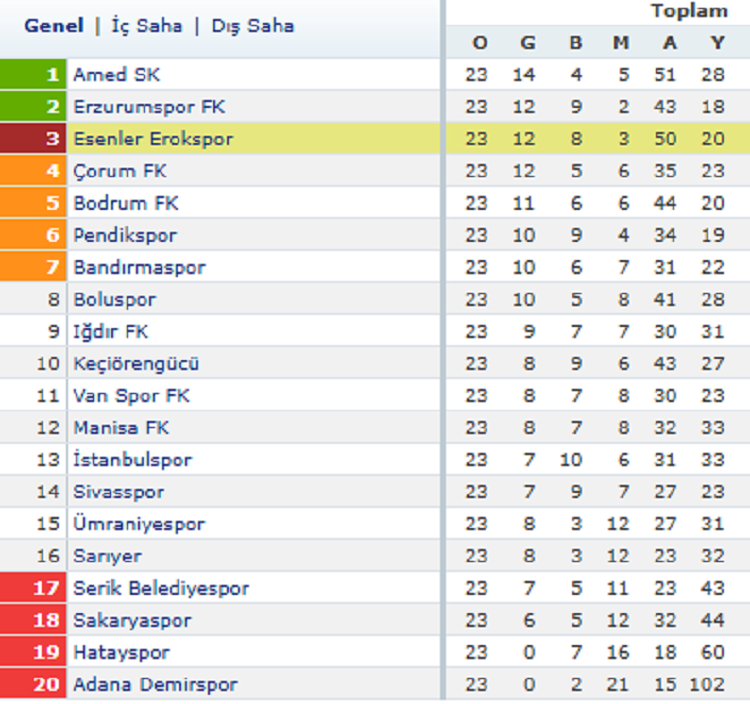 2-Esenler Erokspor: 23 hafta 50 gol,