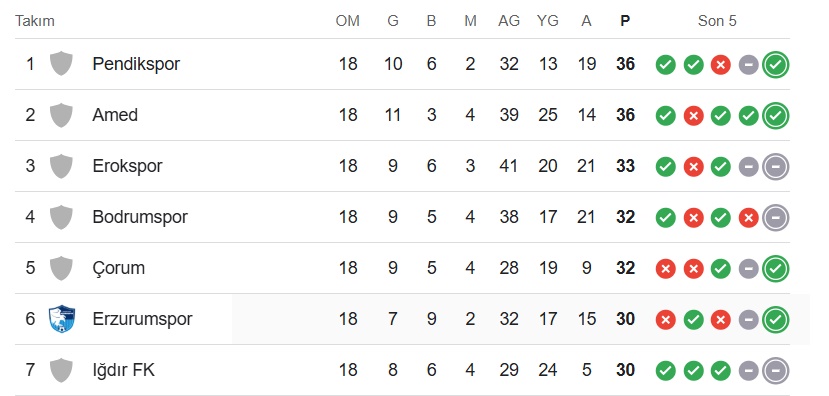 Amedspor, bu sonuçla puanını 36 yaparak averajla ligde ikinci sıraya geriledi. Pendikspor ise aynı puanla liderlik koltuğuna oturdu.