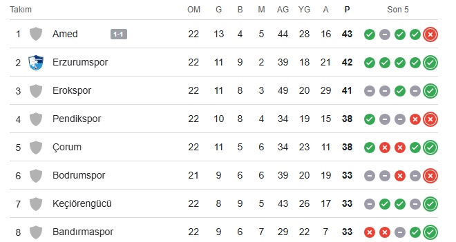 Amedspor, bu sonuçla puanını 43’y yükselterek liderliğini sürdürdü.