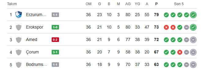 Bu sonuçla ligin bitimine 2 hafta kala Erokspor ligde ikinci, Amedspor ise üçüncü sıraya yerleşti.