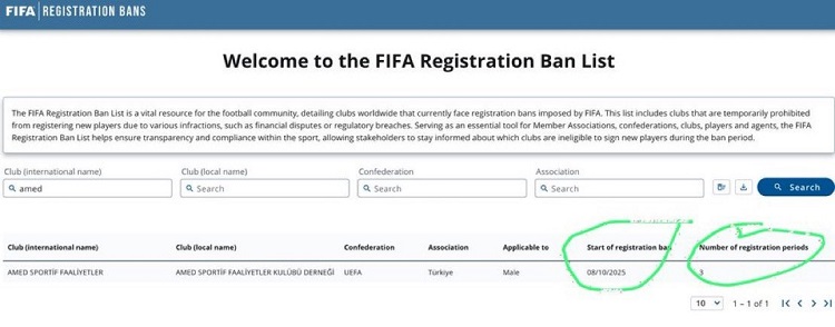 FIFA'nın resmi sitesinde yayımlanan karara göre, yasağın nedeni kadın futbolcu Blessing Okpe'nin kulübe karşı açtığı dava. Anlaşmazlığın, oyuncu ile kulüp arasındaki mali yükümlülüklerden kaynaklandığı belirtildi.