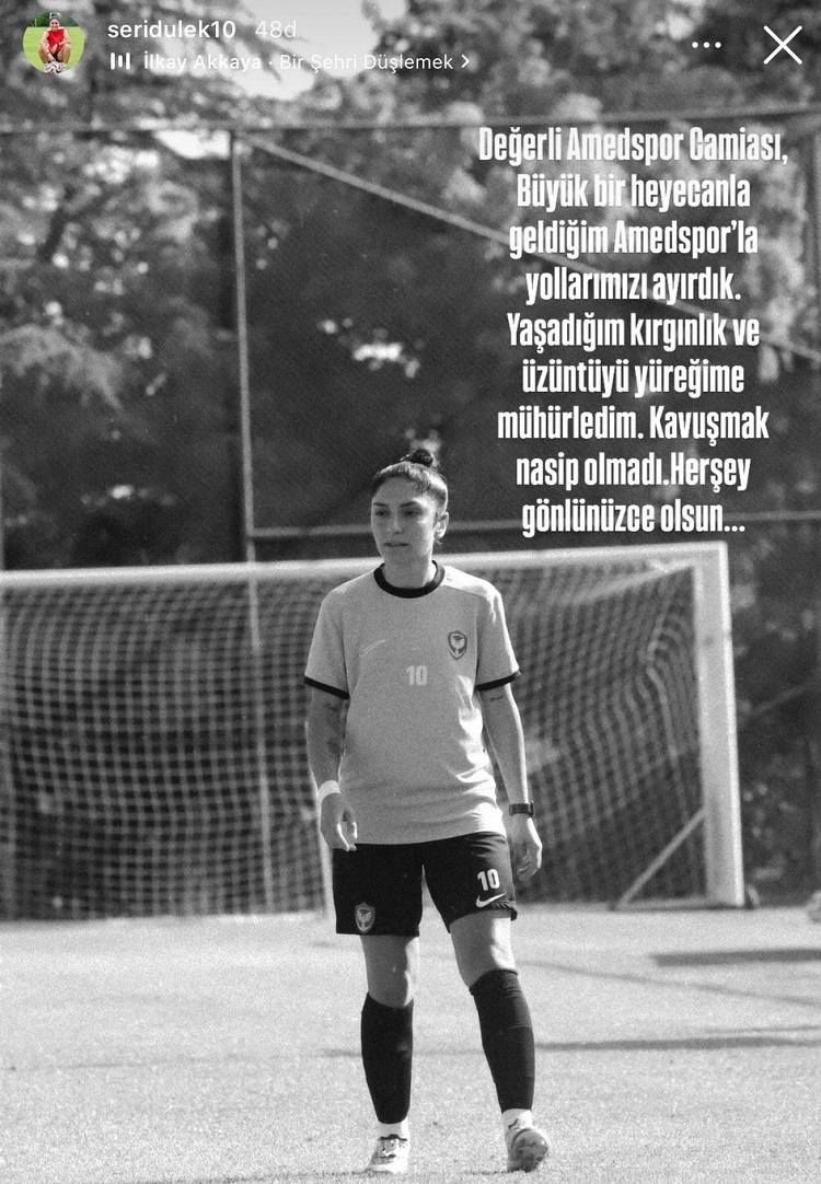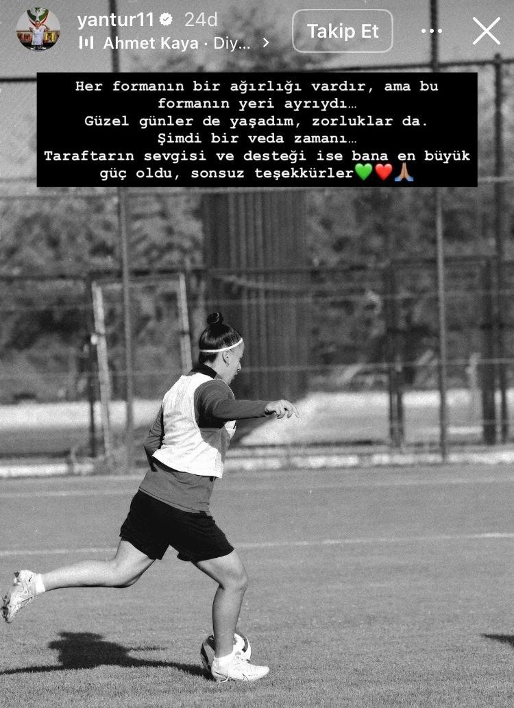Takımdan ayrılan bir diğer isim olan Fatmanur Yantur ise daha ılımlı bir veda mesajı yayınladı. Amedspor formasının kendisi için önemine vurgu yapan Yantur, taraftarın sevgisine teşekkür etti: