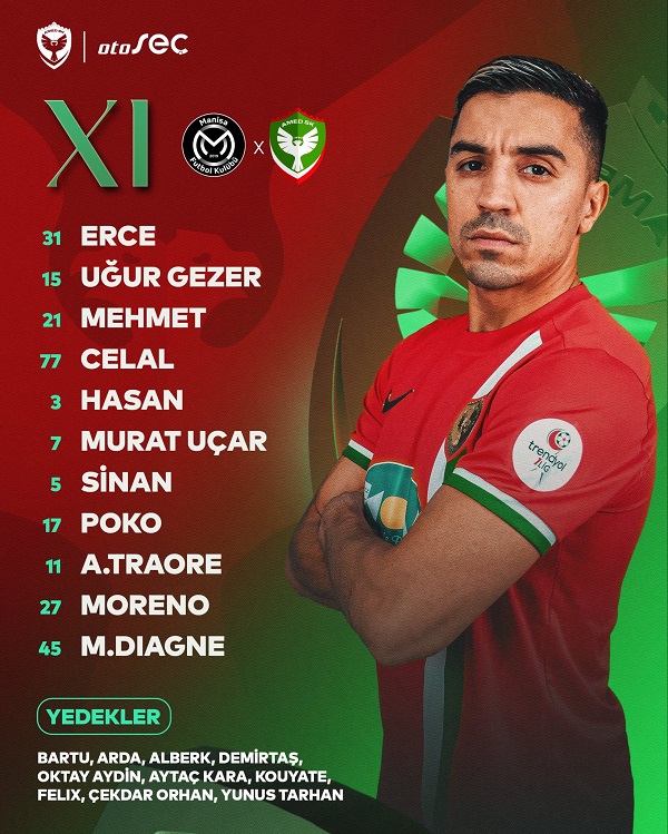 TFF 1. Lig’de mücadele eden Amedspor, bugün (21 Ekim) saat: 13.30’da deplasmanda Manisa FK ile karşılaşacak. Dia Saba’nın sarı kart cezalısı olduğu maçta yerine Adama Traore alırken, Aytaç Kara ise yedeklere yer alarak yerine Poko görev yapacak.