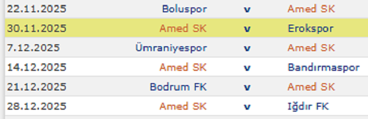 Amedspor'un kritik 6 maçlık fikstürü şu şekilde: