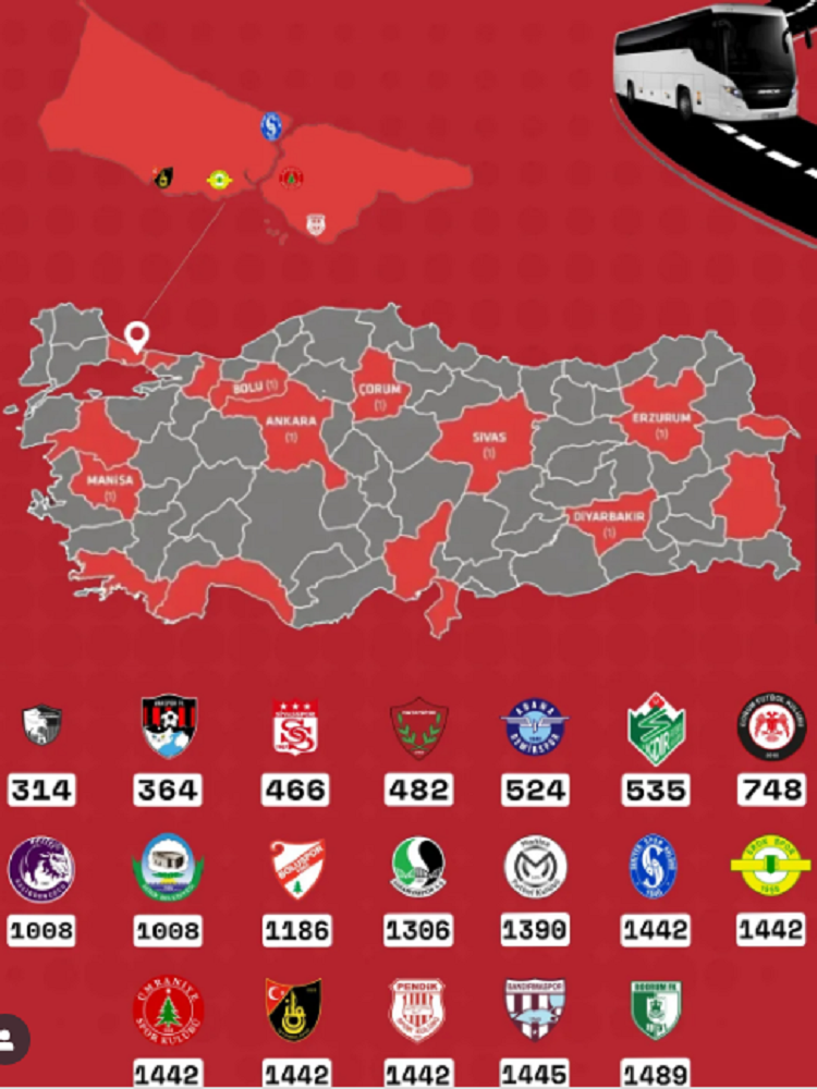 Amedspor’un gideceği deplasmanlar arasında en yakın olanı 314 kilometre mesafeyle Erzurum olurken; en uzak deplasman yeri ise Muğla’nın Bodrum ilçesi oldu. Mesafesi ise 1489 kilometre oldu.