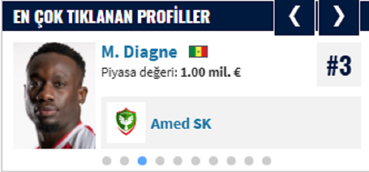 Böylece tecrübeli golcü Mbaye Diagne, transfermarkt verilerinde günün en çok tıklanan ve aranan futbolcuları arasında yer almayı başardı ve listenin 3.sırasına yükseldi.