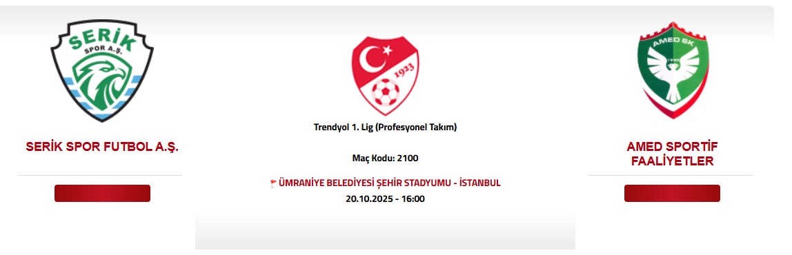 TFF 1. Lig’de mücadele eden Amedspor, ligin 10. Haftasında Antalya temsilcisi Serikspor’la karşılaşacak. Milli ara nedeniyle Antalya’da kampa giren Amedspor’un daha önce Pazar günü oynanması planlanan Serikspor karşılaşması, 20 Ekim 2025 Pazartesi günü saat 16.00’ya alındı. Maç ise İstanbul’da Ümraniye Belediyesi Şehir Stadyumu'nda oynanacağı belirtildi.