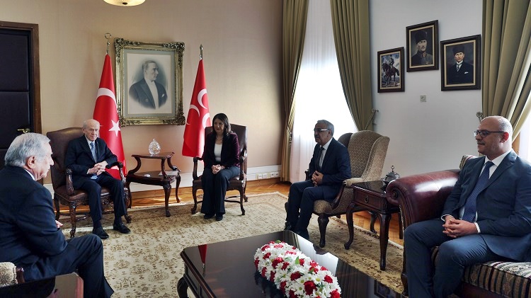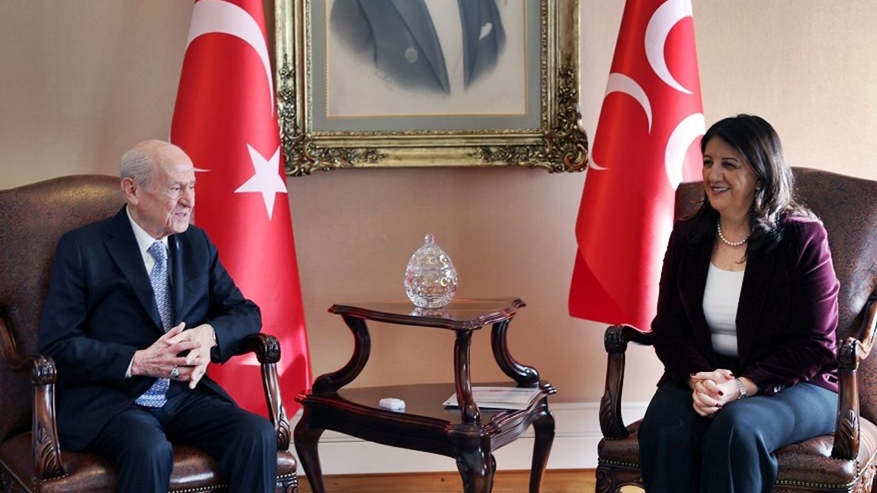 DEM Parti İmralı Heyeti Pervin Buldan, Mithat Sancar ve Asrın Hukuk Bürosu üyesi Faik Özgür Erol ile MHP Genel Başkanı Devlet Bahçeli ile görüştü. Meclis'te yapılan görüşmede, Bahçeli ve beraberindekiler, heyeti kapıda karşıladı. Basına verilen fotoğraf ve görüntünün ardından görüşme, Bahçeli'nin Meclis odasında basına kapalı şekilde devam etti.