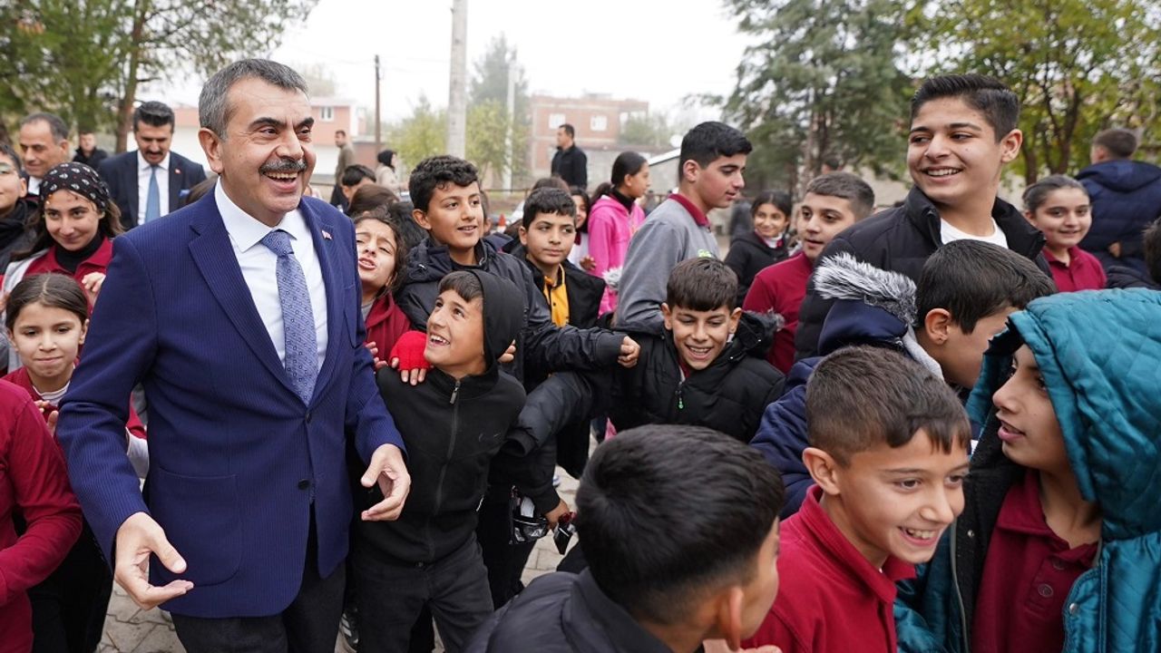 Milli Eğitim Bakanı Yusuf Tekin, yol güzergahında Diyarbakır'ın Çınar ilçesindeki Yuvacık İlkokulunda öğretmen ve öğrencilerle görüştü.