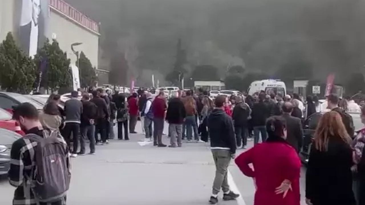 Bina içerisinden gelen ilk görüntülerde şahsın başına silah dayadığı görüldü. Tedirgin olan çalışanlar ise kanal binası önünde kalabalık oluşturdu.