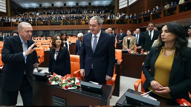 DEM Parti Eş Genel Başkanı Tülay Hatimoğulları, TBMM açılış resepsiyonunda Cumhurbaşkanı ve AK Parti Genel Başkanı Recep Tayyip Erdoğan ile verdikleri ve tartışmalara neden olan fotoğraflara ilişkin konuştu.