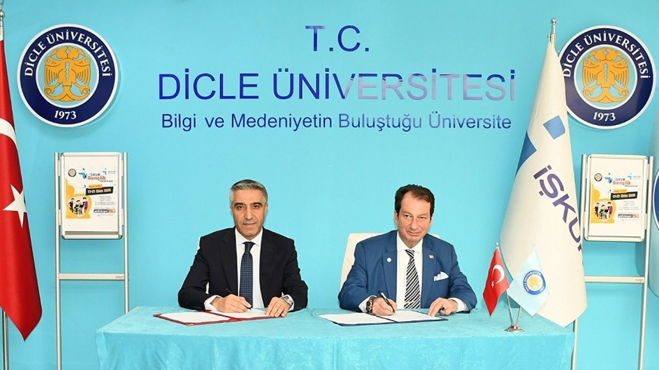 Dicle Üniversitesi ile Diyarbakır Çalışma ve İş Kurumu (İŞKUR) İl Müdürlüğü arasında, öğrencilerin eğitimlerine devam ederken istihdam edilmesini sağlayacak “İŞKUR Gençlik Programı” iş birliği protokolü imzalandı. Dicle Üniversitesi Rektörlüğünde düzenlenen imza töreni, Rektörümüz Prof. Dr. Kamuran Eronat ve Diyarbakır İŞKUR İl Müdürü Reşat Merttir tarafından gerçekleştirildi.