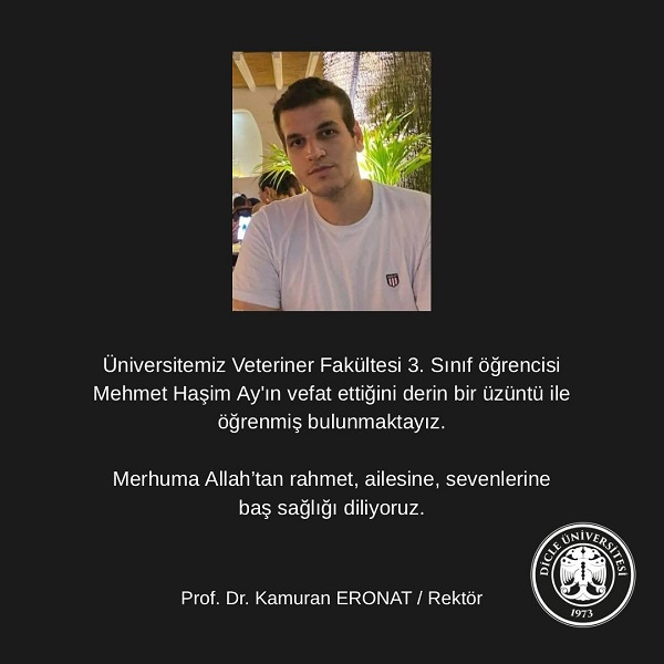 Dicle Üniversitesi Rektörü Kamuran Eronat’ın başsağlığı mesajı şöyle: “Üniversitemiz Veteriner Fakültesi 3. Sınıf öğrencisi Mehmet Haşim Ay'ın vefat ettiğini derin bir üzüntü ile öğrenmiş bulunmaktayız. Merhuma Allah’tan rahmet, ailesine, sevenlerine baş sağlığı diliyoruz.”