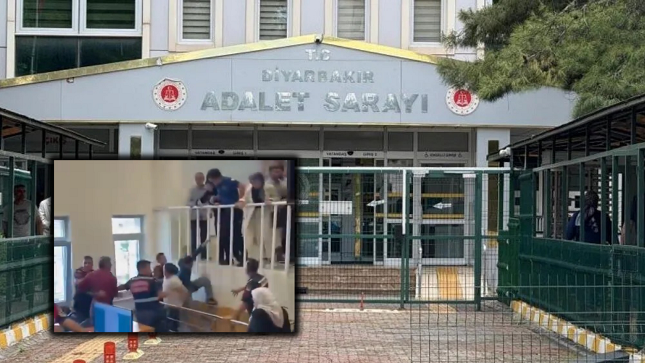 Diyarbakır Adliyesinde, görülmekte olan bir cinayet davası duruşması, taraflar arasında çıkan kavga nedeniyle bir anda savaş alanına döndü. 10. Ağır Ceza Mahkemesi salonunda yaşanan arbede, adliye koridorlarında büyük paniğe yol açtı. İşte adliyedeki kavganın görüntüleri: