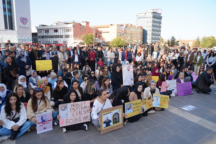 Rojin Kabaiş için Adalet Komisyonu, Van’da 27 Eylül 2024’te kaldığı yurttan ayrıldıktan sonra kaybolan ve 15 Ekim’de cansız bedeni bulunan Yüzüncü Yıl Üniversitesi öğrencisi Rojin Kabaiş’e ilişkin Dağkapı Meydanı’nda oturma eylemi düzenledi. Dağkapı meydanında bir araya gelen yüzlerce kişi Rojin için adalet çağrısında bulundu.