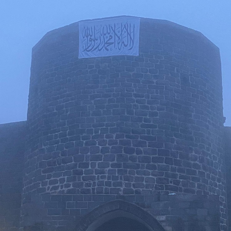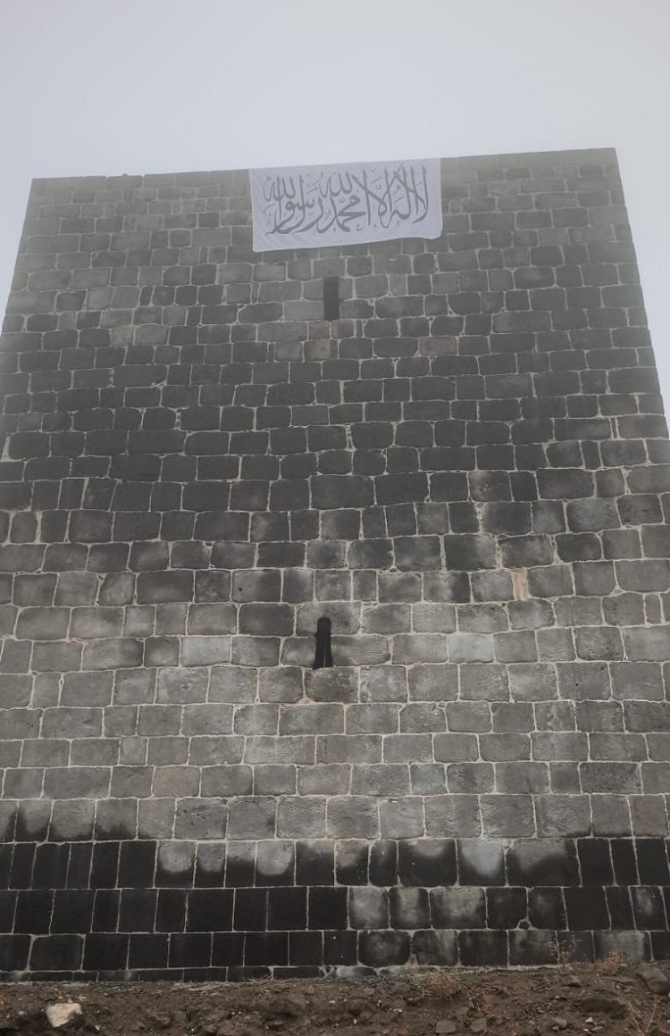 Tarihi surların üzerine, üzerinde 'Allah'a rağmen sözü dinlenilecek hiç kimse yoktur. Bu evrende yerin ve göğün yaratıcısından başka İlah yoktur' yazılı Kelime-i Tevhid bayrağı asıldı.