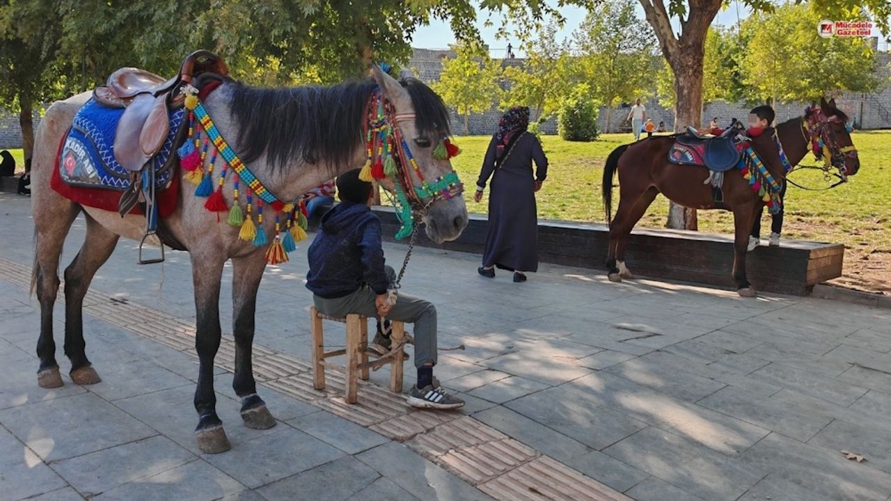Alana getirilen iki at, çocuklar eşliğinde kısa tur gezintileri için kullanılıyor. Tur başına 100 TL ücret talep edildiği öğrenildi. Yasağın devam etmesine rağmen turistik gezilerin yeniden başlatılması vatandaşları endişelendiriyor.