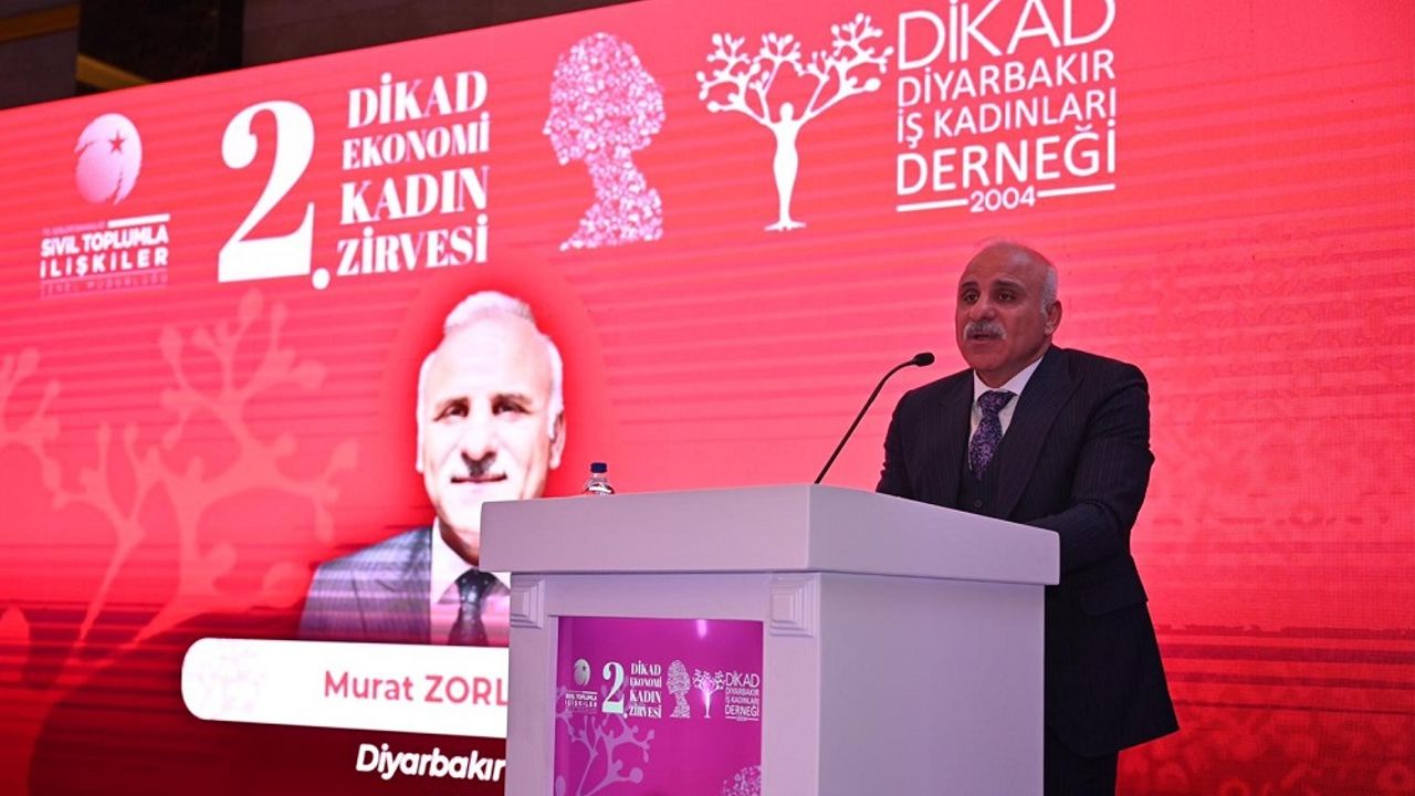 Diyarbakır, kadın girişimciliğinin bölgesel kalkınmadaki kilit rolünü ele almak üzere önemli bir buluşmaya ev sahipliği yaptı. DİKAD 2. Ekonomi Kadın Zirvesinde konuşan Vali Murat Zorluoğlu, "Toplumun yarısını oluşturan kadınları dikkate almayan hiçbir kalkınma hamlesinin başarılı olma imkanı yoktur" dedi.