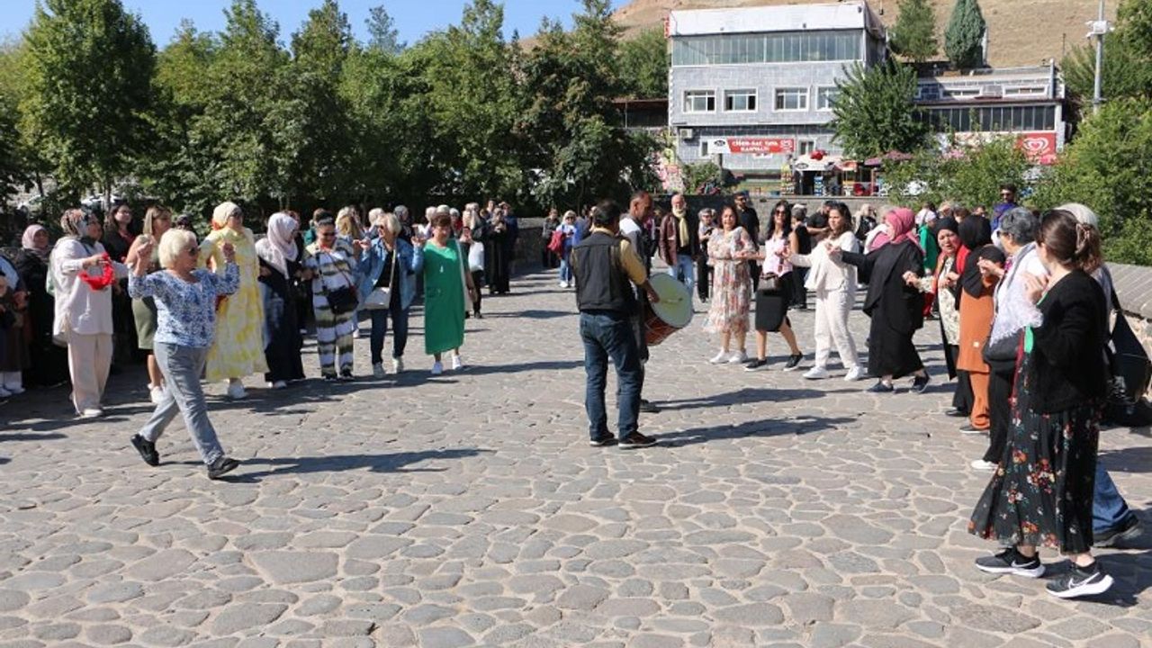 Burdur'dan gelen ve çoğunluğu muhasebecilerden oluşan bir turist kafilesi, Diyarbakır'ın tarihi simgelerinden On Gözlü Köprü'de (Dicle Köprüsü) sergiledikleri performansla sosyal medyada beğeni aldı.