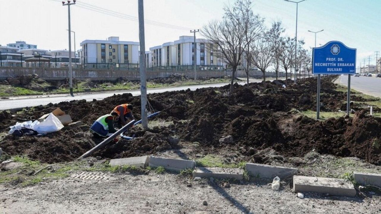 Prof. Dr. Necmettin Erbakan Bulvarı’nın Diclekent Bulvarı ile Şanlıurfa yolu arasındaki bölümünde çalışmalarını sürdüren ekipler, daha önce ağaçlandırılmış refüjlerin sulama hatlarını da elden geçirerek yeniledi.