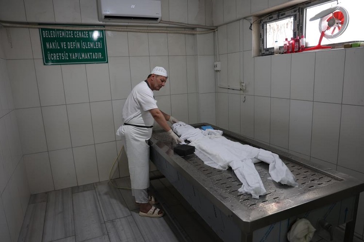 "Adli tıptan gelen cenaze, göğüsten aşağı kadar açılarak, tekrar dikilerek ve kanaması tabii durmuyor. O kanıyla beraber bize getiriyorlar. Yıkanması, abdesti, gusül, pamuk ve naylonla en son kefen yapıyoruz ki o kanaması dışarı saçılmasın. Normal bir cenaze sabunla yıkayabilirsiniz, bir yanma geldiği zaman sabunla yıkayamazsın. Güzelce suyla yıkıyorsun, üstünde necaset var ise onu temizliyorsun."