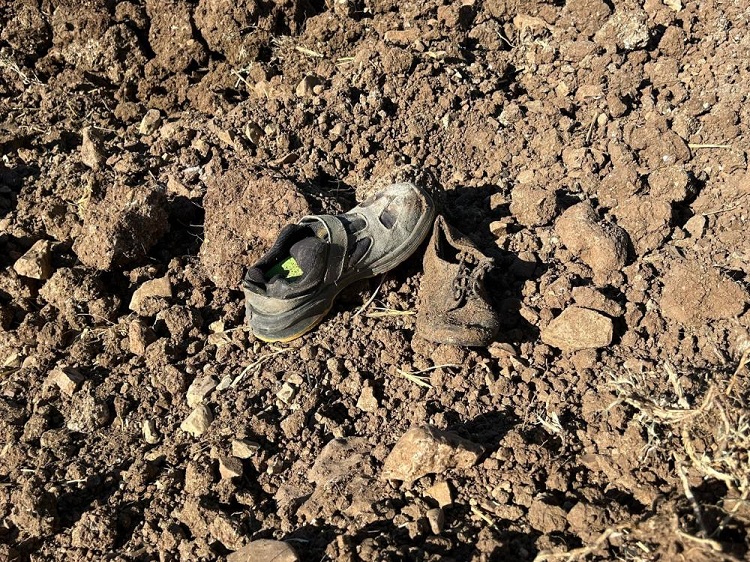 4 kuzene mezar olan kuyu, cansız bedenler çıkartıldıktan sonra toprakla kapatıldı. Alan dron ile görüntülenirken, kapatılan kuyunun üzerinde bulunan ayakkabılar yürekleri dağladı.