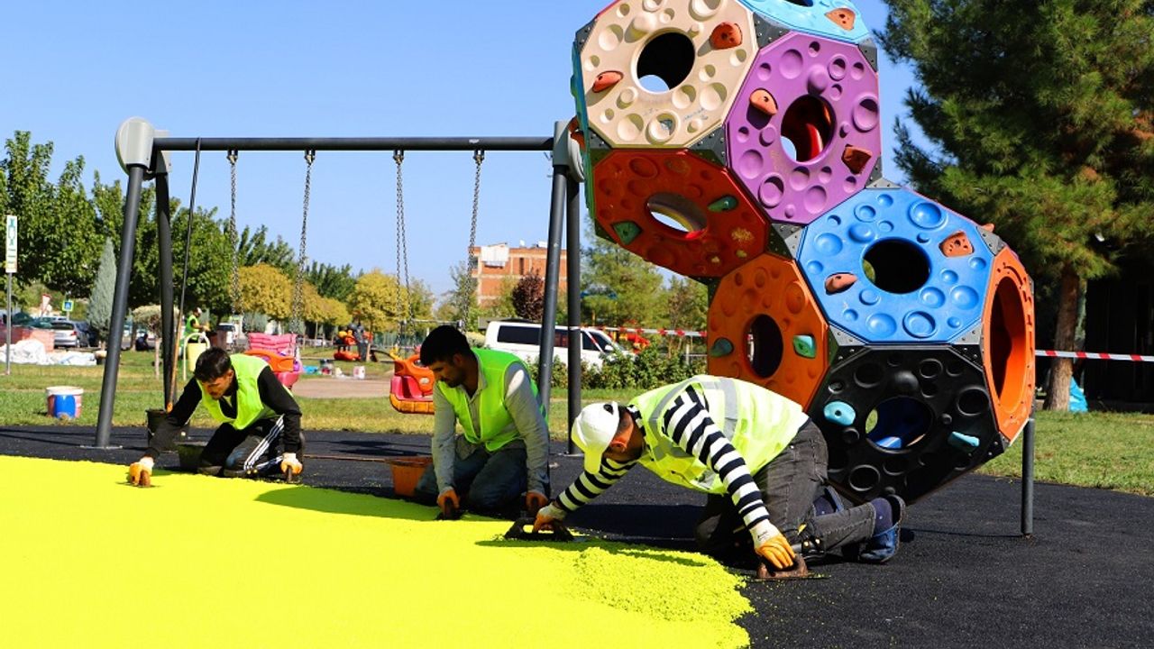 Büyükşehir Belediyesi Park ve Bahçeler Dairesi Başkanlığı, Sur, Kayapınar, Yenişehir ve Bağlar ilçelerinde yıpranan çocuk oyun grupları, açık hava fitnnes aletleri, oyun alanlarının emniyetli zemin kaplamaları ile spor sahalarının zeminlerini modern, güvenli ve erişebilir hale getirmek için çalışma başlattı.