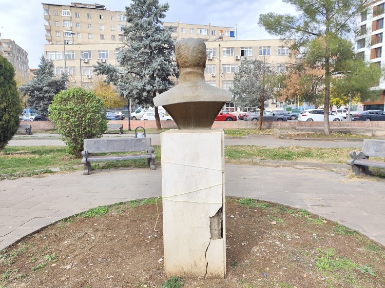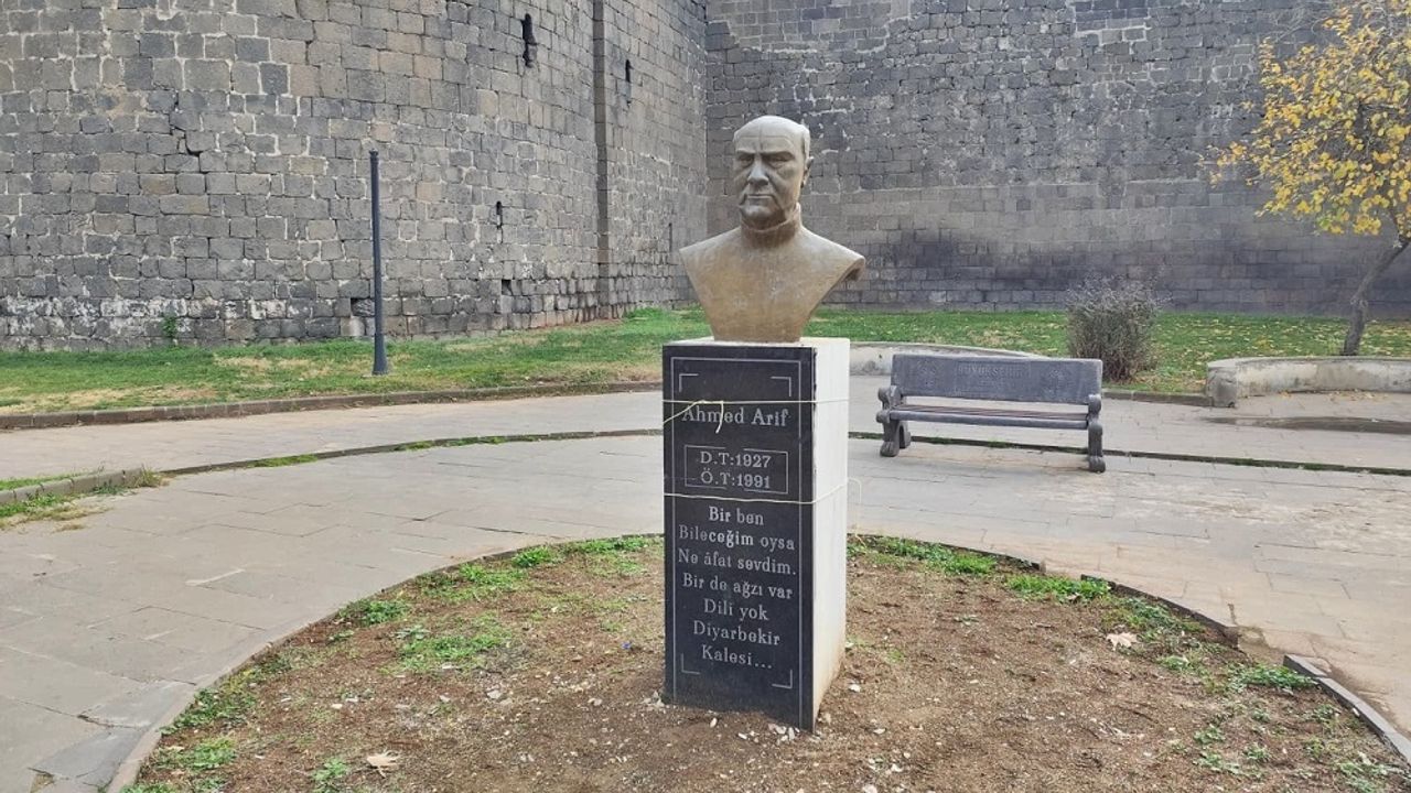 Diyarbakır Surlarının Çift Kapı civarında bulunan, edebiyatımızın önemli şairlerinden Diyarbakırlı Ahmed Arif’i simgeleyen büstün zarar gördüğü görüldü. Büstün arka kısmının kırıldığı, kenar bölümlerinde hasar oluştuğu ve ön kısmının ise ip yardımıyla sabitlenmeye çalışıldığı dikkat çekti.