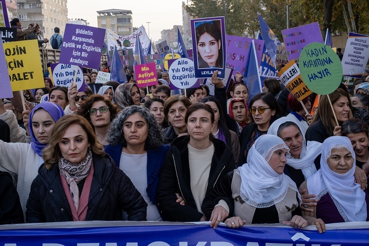 Diyarbakır’da Özgür Kadın Hareketi (Tevgera Jinên Azad-TJA) öncülüğünde, 25 Kasım Kadına Yönelik Şiddete Karşı Uluslararası Mücadele Günü dolayısıyla yürüyüş gerçekleşti. Eski Cezaevi önünden Ofis Semti’nde bulunan AZC Plaza önüne doğru “Demokratik Toplumla Şiddetsiz Özgür Yaşama” şiarıyla gerçekleştirilen yürüyüşe, siyasi parti ile sivil toplum örgütü temsilcisinin yanı sıra çok sayıda kadın katıldı.