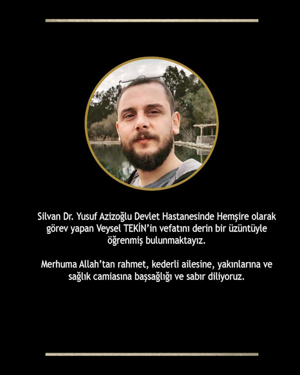 Veysel Tekin’in ölümüne ilişkin Diyarbakır İl Sağlık Müdürlüğü’nden açıklama geldi. Açıklamada, “Silvan Dr. Yusuf Azizoğlu Devlet Hastanesinde hemşire olarak görev yapan Veysel Tekin’in vefatını derin bir üzüntüyle öğrenmiş bulunmaktayız. Merhuma Allah’tan rahmet, kederli ailesine, yakınlarına ve sağlık camiasına baş sağlığı ve sabır diliyoruz” denildi.