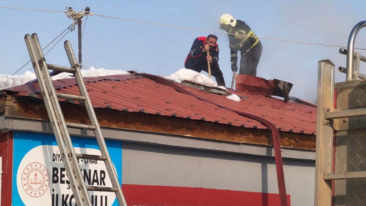 Diyarbakır'ın Çınar ilçesinde bir okulda sobadan çıkan kıvılcımla çatıda çıkan yangın bir felakete yol açmadan ekipler tarafından kısa sürede kontrol altına alınarak söndürüldü.
