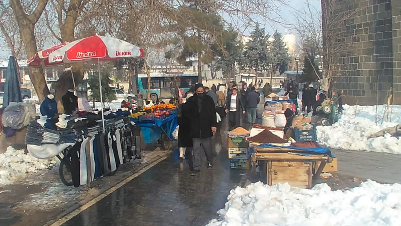 Diyarbakır’da geçen hafta etkili olan yoğun kar yağışı ve buzlanmadan seyyar satıcılar da nasibini aldı. Dondurucu havaya rağmen kaldırım ve sur diplerinde çeşitli ürünler satmaya çalışan seyyar satıcılar iş yapamamaktan yakındı.