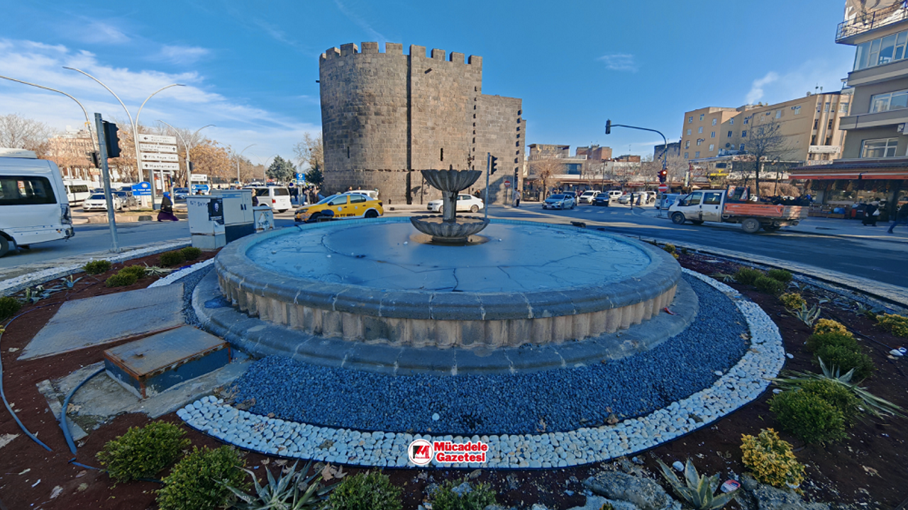 Kent merkezinin en işlek noktalarından biri olan Dağkapı kavşağında bulunan süs havuzu, bu kez fıskiyelerinden akan sularla değil, üzerini kaplayan kalın buz tabakasıyla dikkat çekiyor.