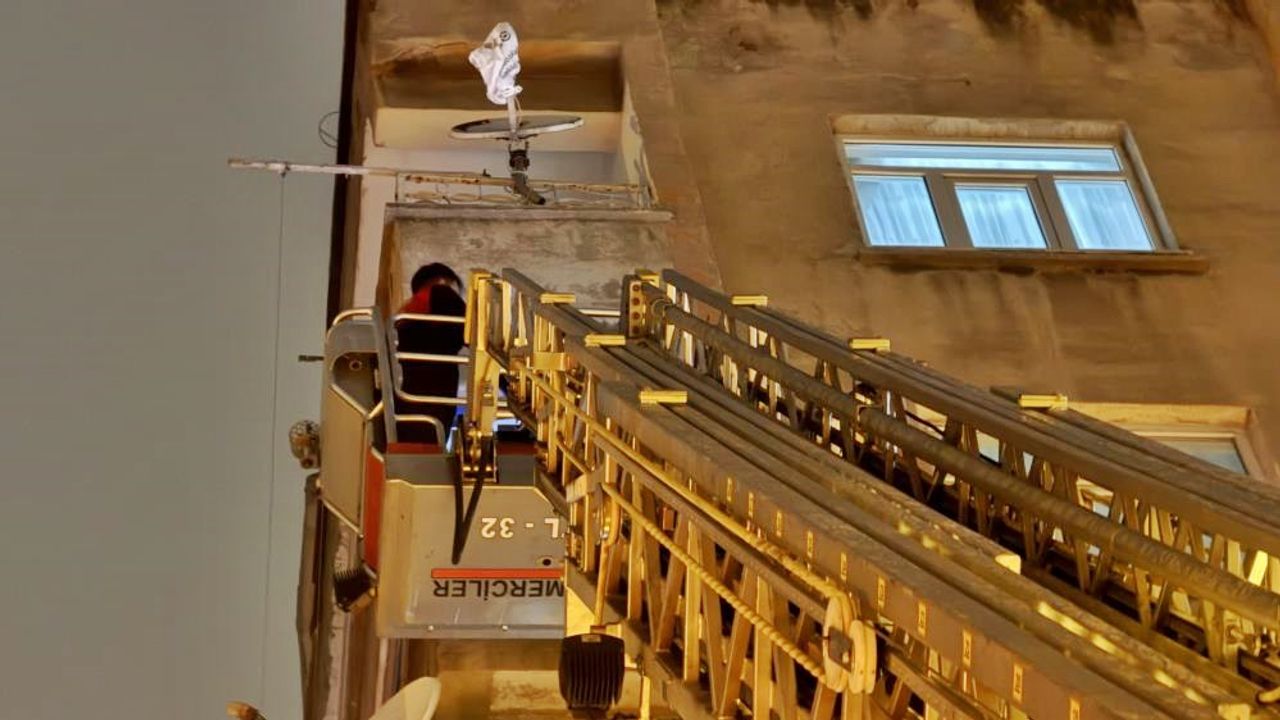 İtfaiye ekipleri merdivenle daireye çıktı. Eve giren ekipler, çocuğu uyandırarak kapıyı açtı.