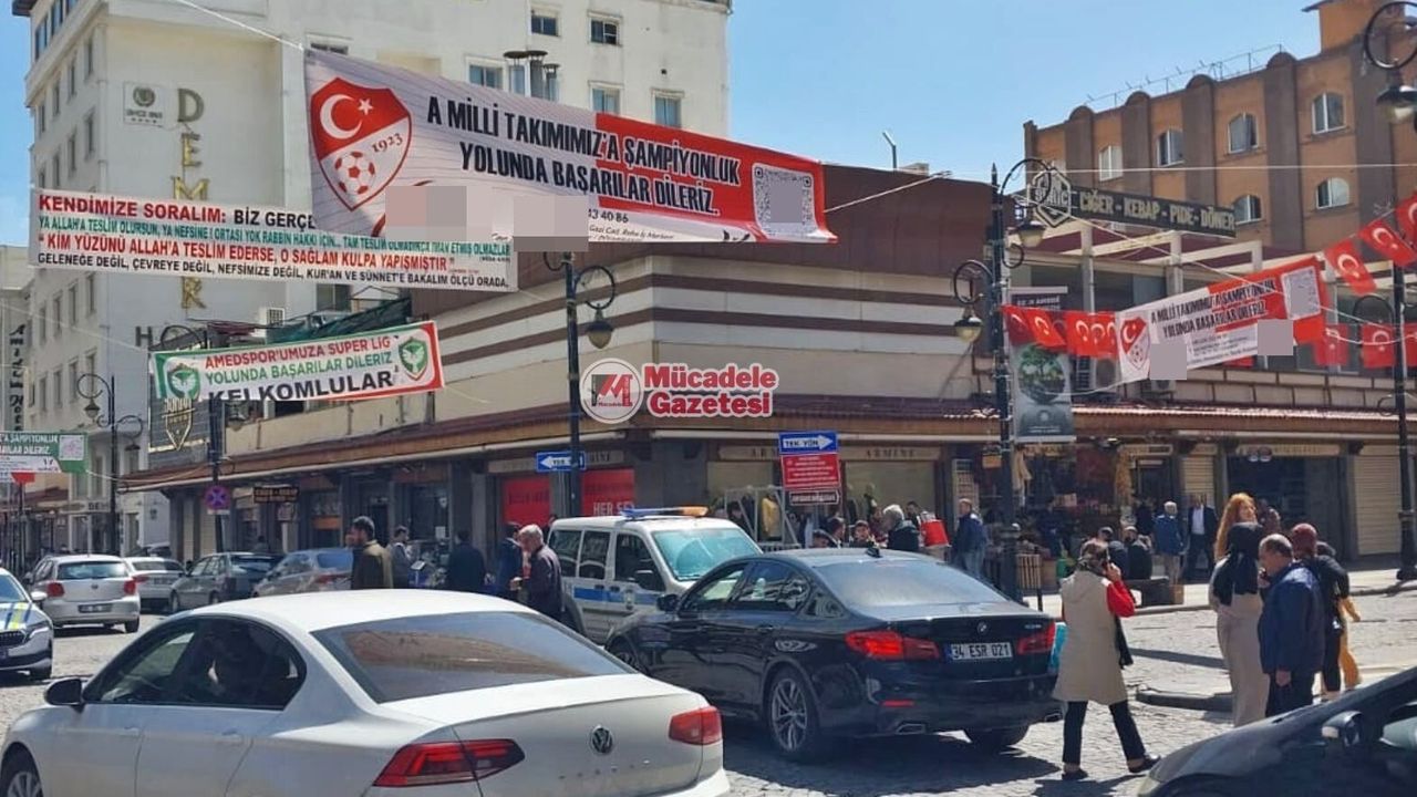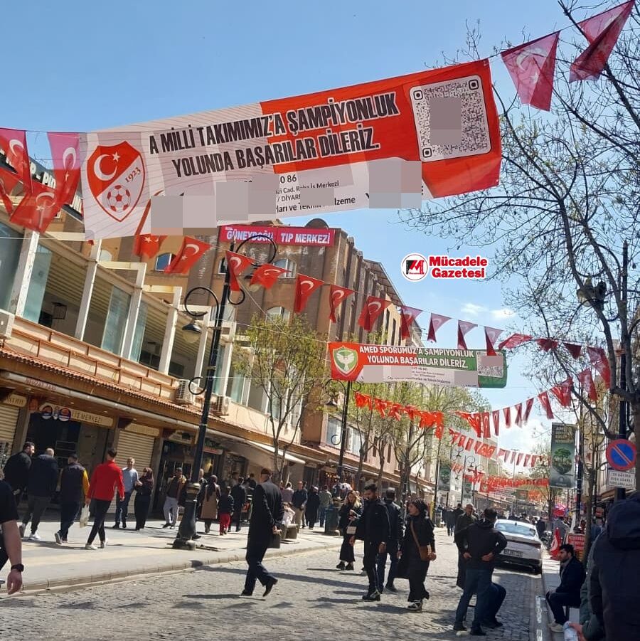 Söz konusu bir pankartta, “Amedsporumuz’a şampiyonluk yolunda başarılar dileriz” diyen işletme başka bir pankartta ise, A Milli Takımımız’a şampiyonluk yolunda başarılar dileriz” ifadelerine yer verdi.