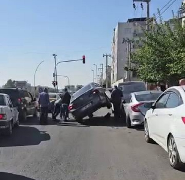 Kaza, merkez Bağlar ilçesi Fatih Mahallesi Cemiloğlu Caddesi'nde meydana geldi. 21 BB 328 plakalı otomobil, sürücüsünün direksiyon hakimiyetini kaybetmesi sonucu yol kenarında park eden 2 araca çarpıp üzerlerinde asılı kaldı.