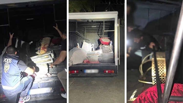 Diyarbakır Göçmen Kaçakçılığıyla Mücadele ve Hudut Kapıları Şube Müdürlüğü tarafından 1 Ekim 2025'te kamyonet tipi araç içerisinde yapılan aramada fan ve klima düzeneğinin bulunduğu gizli bölme tespit edildi.