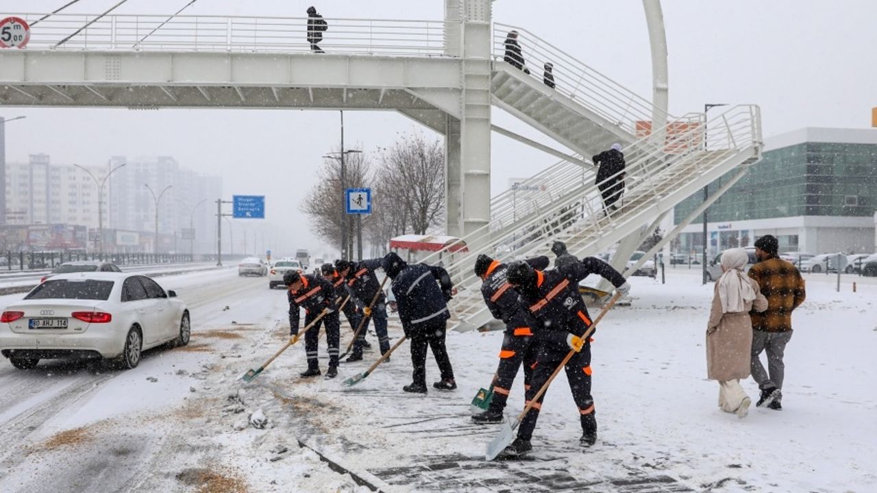 Büyükşehir Belediyesi ekipleri, yurttaşların güvenli bir şekilde yürüyebilmeleri ve olası düşmelerin önüne geçilmesi amacıyla hastane yolları, üst geçitler ve toplu taşıma duraklarında kar temizliği yaparak buzlanmaya karşı tuzlama çalışmaları yürüttü.