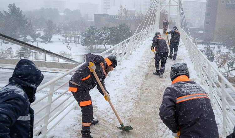 Diyarbakır Büyükşehir Belediyesi, ilçe belediyeleriyle koordineli şekilde karla mücadele çalışmalarını aralıksız sürdürüyor. Bu kapsamda Çevre Koruma ve Kontrol Dairesi Başkanlığı, Park ve Bahçeler Dairesi Başkanlığı, Yol Bakım ve Altyapı Koordinasyon Dairesi Başkanlığı ile ilçe belediyelerinden oluşturulan toplam 850 kişilik ekip, kent genelinde kar küreme, yol açma, tuzlama ve temizlik çalışmaları gerçekleştiriyor.