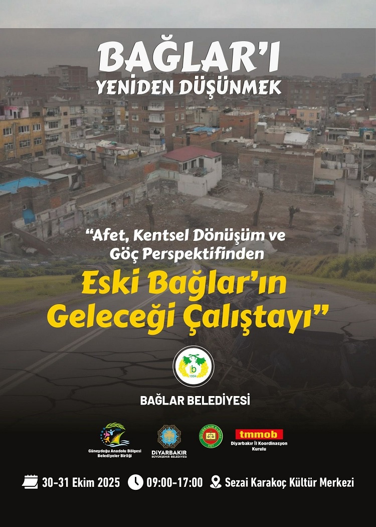 Bağlar Belediyesi’nden yapılan açıklama şöyle: “Belediyemiz 6 Şubat depreminin de etkisiyle Eski Bağlar’da gittikçe derinleşen imar ve kentleşme sorunlarına çözüm bulmak amacıyla önemli bir çalıştay düzenliyor. “Afet, Kentsel Dönüşüm ve Göç Perspektifinden Eski Bağlar’ın Geleceği” başlığıyla düzenleyeceğimiz çalıştayda alanında uzman konuklarla kentsel iyileştirme, deprem dirençli kentler, mekânsal dönüşüm ve afet sonrası yeniden yapılanma gibi konuları ele alacak.