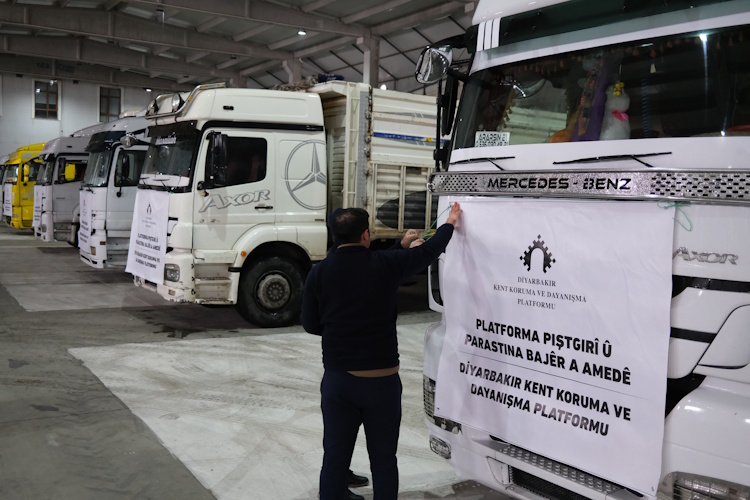 Diyarbakır Kent Koruma ve Dayanışma Platformu, Kobanê ile dayanışma amacıyla başlatılan acil insani yardım kampanyasının detaylarını ve hazırlıklarını TÜYAP Fuar ve Kongre Merkezi’nde düzenlenen basın açıklamasıyla duyurdu. Basın açıklamasına çok sayıda sivil toplum örgütü temsilcisi katıldı.