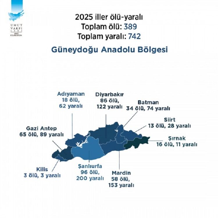 Umut Vakfı tarafından açıklanan 2025 Yılı Silahlı Şiddet Raporu, Güneydoğu Anadolu Bölgesi’ndeki tablonun vahametini bir kez daha gözler önüne serdi.