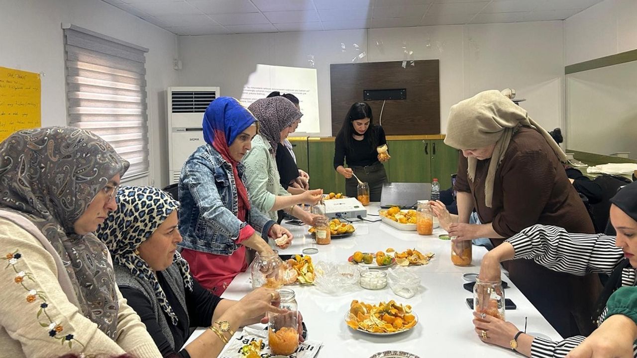 Atölyenin uygulama bölümünde ise katılımcılarla birlikte zerdeçallı mandalina sirkesi hazırlandı. Kadınlar atölyede, hem sirke yapımının inceliklerini öğrendi hem de kendi sirkelerini üretti.