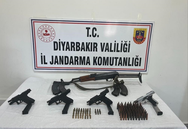Diyarbakır İl Jandarma Komutanlığı, Çınar İlçe Jandarma Komutanlığı ekiplerince yürütülen planlı ve titiz çalışmalar neticesinde A.B. isimli kişinin, ikametinde ruhsatsız silah ve mühimmatları bulundurduğu öğrenildi. Yapılan operasyonda 2 adet Glock marka 9 milimetre ruhsatsız tabanca, 1 adet Sıg Sauer marka 7.65 milimetre ruhsatsız tabanca, 1 adet Sprıngfıeld Armory USA marka ruhsatsız tabanca, 1 adet AK-47 marka piyade tüfeği, 4 adet AK-47 marka piyade tüfeği şarjörü, 4 adet tabanca şarjörü, 86 adet 7.62 milimetre AK-47 piyade tüfeği fişeği, 41 adet 9 milimetre tabanca fişeği, 9 adet 7.65 milimetre tabanca mermisi ele geçirildi.