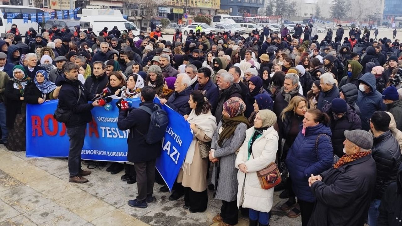Amed Demokratik Kurumlar Platformu Rojava’ya dönük saldırılara ilişkin Diyarbakır’da Dağkapı Meydanı’nda açıklama yaptı. Açıklamaya sivil toplum örgütü ve siyasi parti temsilcileri ile çok sayıda yurttaş katıldı.