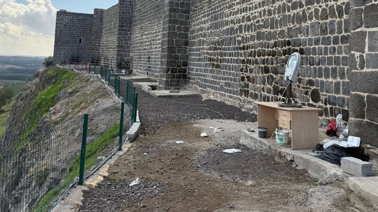 Sur Belediyesi Zabıta Müdürlüğü ekipleri tarihi dokunun korunması amacıyla yürüttükleri denetimler kapsamında, 70 ve 71 numaralı burçlarda şahıslar tarafından yerleştirilen tel örgü, kapı ve tezgâh gibi yapıları tespit etti.