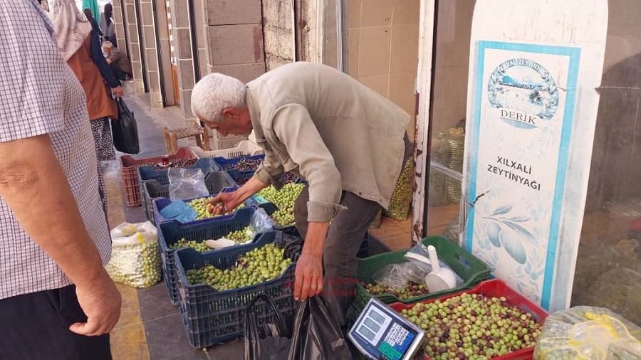 Başta Hatay, Kilis, İskenderun olmak üzere birçok bölgeden gelen zeytinler Diyarbakır tezgahlarında satışa sunuluyor. Geçtiğimiz yıl da kuraklıktan etkilenen zeytin, bu yıl da rekolte olarak düşük. Ürün azlığı ve girdi maliyetleri yüzünden bu yıl da verimi az olan zeytin fiyatı önceki yıllara göre yükseldi.