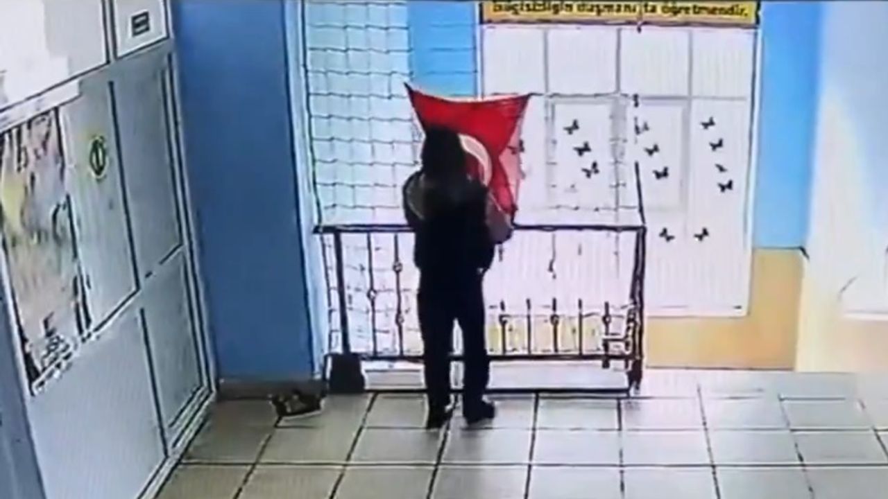 Okul koridorunun merdivenindeki güvenlik filesinin üzerine Türk bayrağını katlanmış olarak bırakan öğretmenler, güvenlik kamerasından öğrencileri gözlemlemeye başladı. Çalışmanın ilk dakikalarında sınıf defterini almak için koridora çıkan 5'inci sınıf öğrencisi Kübra Temiz, katlanmış haldeki bayrağı fark ederek hemen düzeltti. Temiz'in, Türk bayrağıyla alakalı hassasiyeti güvenlik kamerasınca kayda alındı.